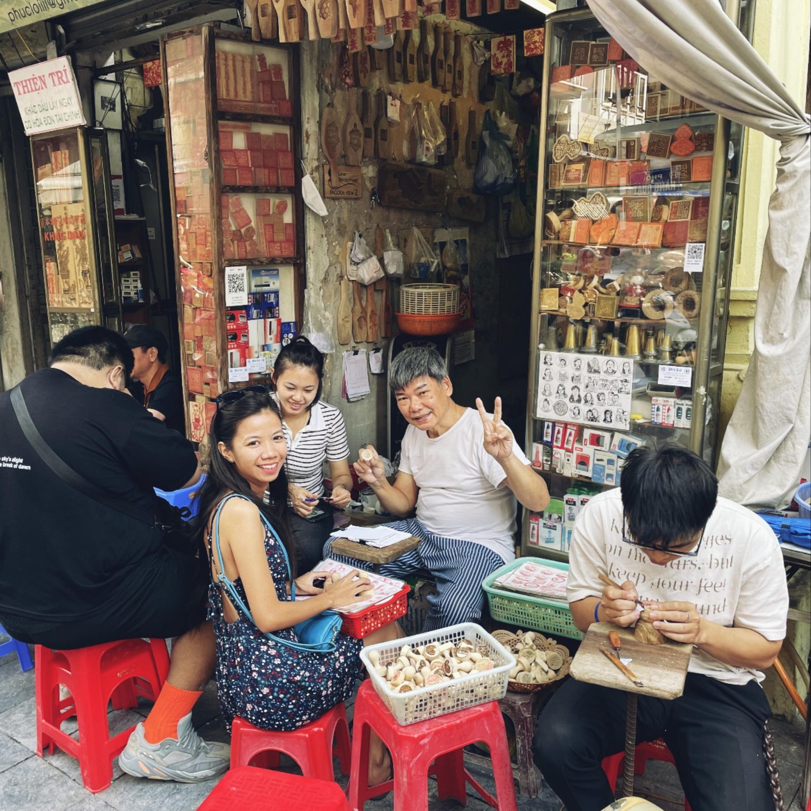 Termine su recorrido en un taller-estudio colaborativo donde artistas emergentes crean objetos llenos de creatividad y significado. Encuentre joyas de arcilla con motivos vietnamitas, impresiones artísticas en papel tradicional y cuadernos hechos a mano. Es el lugar ideal para llevarse un recuerdo único, incluso participando en un pequeño taller express para crear su propia pieza.