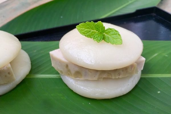 Conocido también como banh phu the, este pastel ocupa un lugar especial en las ceremonias nupciales vietnamitas como símbolo de la armonía entre los esposos. Elaborado con arroz glutinoso que le confiere una textura masticable, su relleno dulce y fragante de frijol mungo y coco crea un contraste delicioso. La vibrante coloración natural obtenida de ingredientes como la calabaza dulce, la cúrcuma o las flores de guisante azul añade un elemento visual festivo a esta delicia cargada de significado cultural.