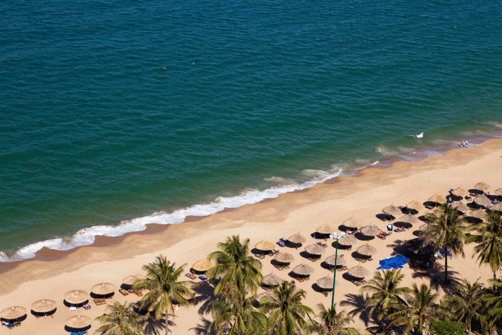 Quy Nhon se siente como un hallazgo: sus playas limpias y su perfil de colinas hacen que cada parada parezca un descubrimiento privado. Ky Co, escondida entre rocas, muestra aguas de un azul puro que invitan al snorkel, mientras que Eo Gio regala un mirador natural donde extender una manta y dejar pasar la tarde escuchando el viento. Para familias, Quy Nhon es una opción serena: aguas calmadas, espacios para nadar con tranquilidad y una costa que parece diseñada para caminar con los niños.