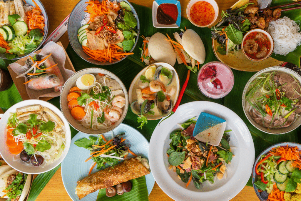 En el sur, la fermentación (como en el mắm—pasta de pescado fermentado) y técnicas como el asado a la parrilla o la fritura son comunes. Ingredientes tropicales—mariscos del Mekong, frutas como el mango verde o la piña, y hierbas como la menta vietnamita y el rau răm—son esenciales . El sur también incorpora más vegetales crudos y platos «de construcción» como el Gỏi Cuốn (rollitos frescos), donde cada comensal personaliza su bocado.