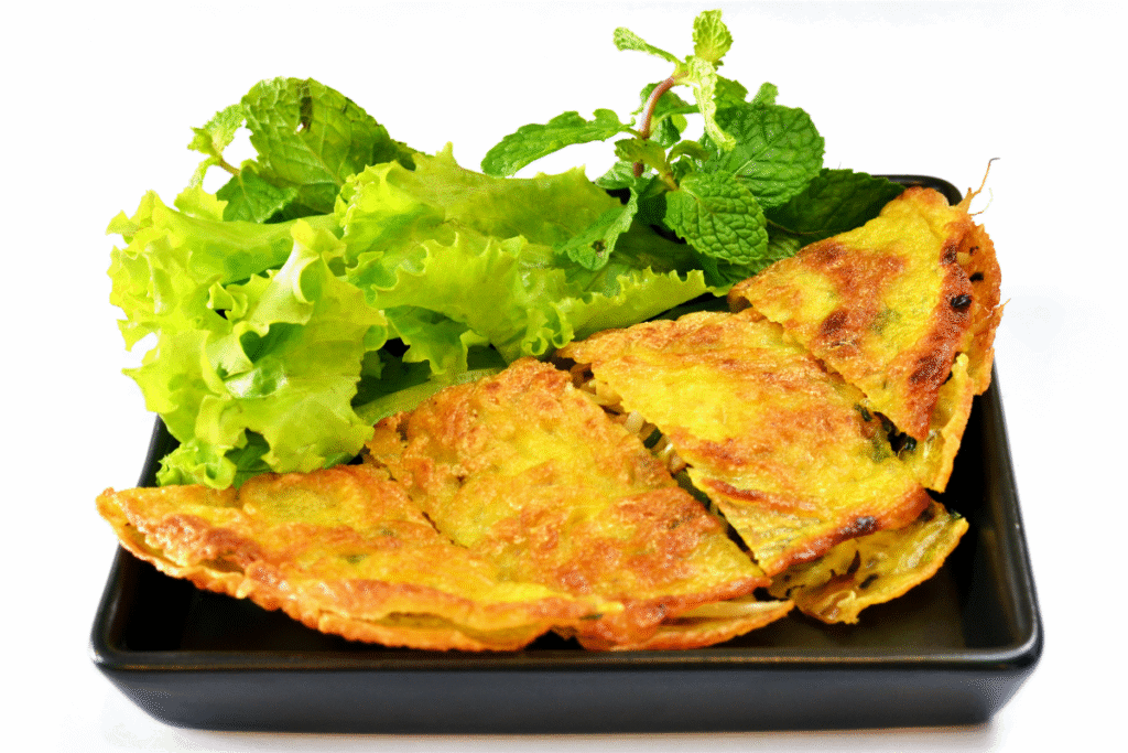 Bánh Xèo en el Delta del Mekong, envuelto en hojas de lechuga y sumergido en salsa de pescado acidulada .